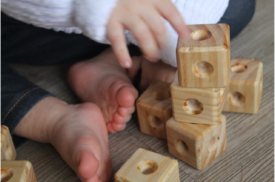 Este set incluye 9 cubos de madera de pino (40 mm × 40 mm) con perforaciones en todas sus caras, pensados para que los niños los ensamblen con los tarugos de madera incluidos. Es un juguete abierto ideal para niños a partir de 1–2 años, que combina construcción, encaje y juego sensorial. Al manipular los cubos y los tarugos, los peques pueden apilar, conectar y crear infinitas formas, lo que estimula la concentración y la motricidad fina.