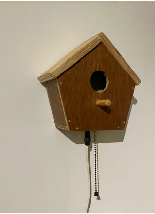 Esta pieza es una lámpara de pared con forma de casita de pájaros, fabricada en terciado y madera masisa, perfecta para habitaciones infantiles. El término “espanta cuco” se refiere a su uso como luz nocturna: al encenderla, el cuarto se llena de una luz suave que “ahuyenta” la oscuridad sin molestar el sueño. El diseño recrea una pequeña casita rústica, con ventanas recortadas por donde se filtra la iluminación. En la práctica, esto significa que los niños disfrutan de un rincón acogedor y familiar (como el nido de un pájaro), ideal para leer un cuento antes de dormir.